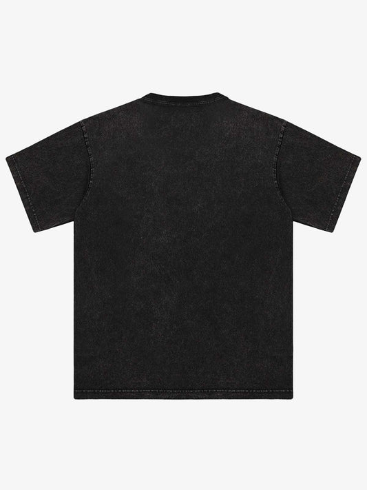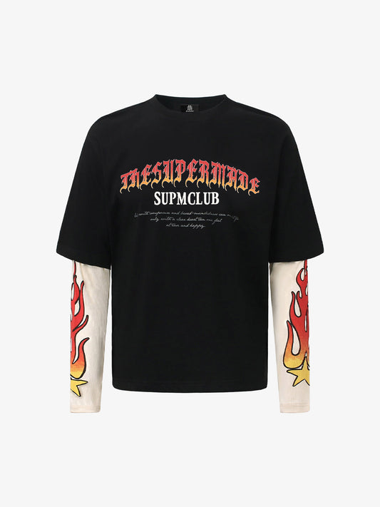 T-shirt Girocollo Oversize con Grafica Fiamme in Cotone Lavato
