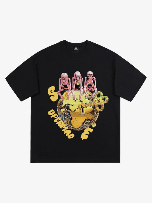 T-shirt Retro Skull Thesupermade in Cotone con Grafica Creativa