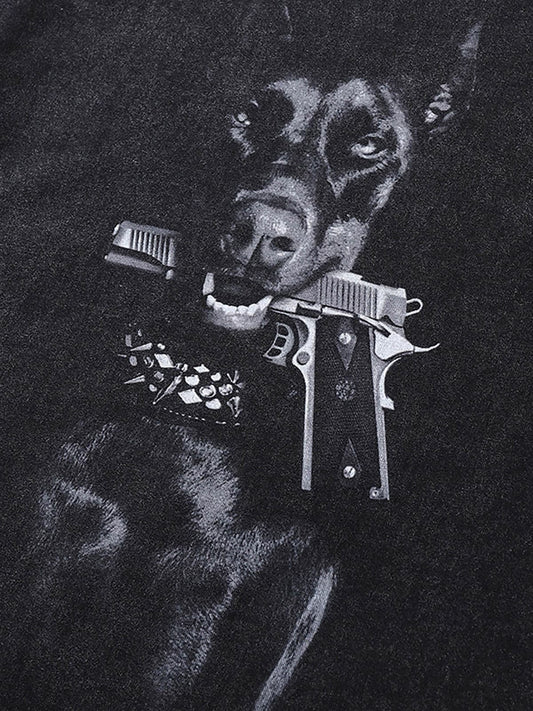T-shirt Retro Lavata Distressed con Stampa Doberman Pinscher