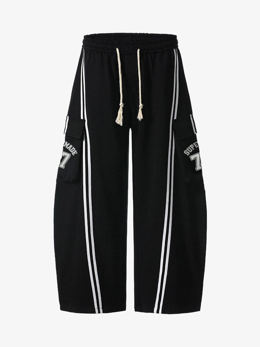 Pantaloni Cargo Barrel in Cotone con Coulisse e Strisce Laterali