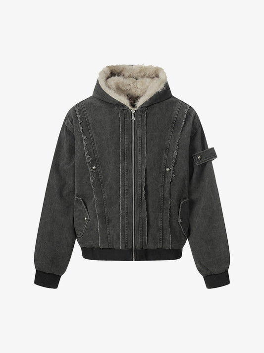 Giacca da Lavoro Retro Lavata con Cappuccio e Interno in Pile Morbido