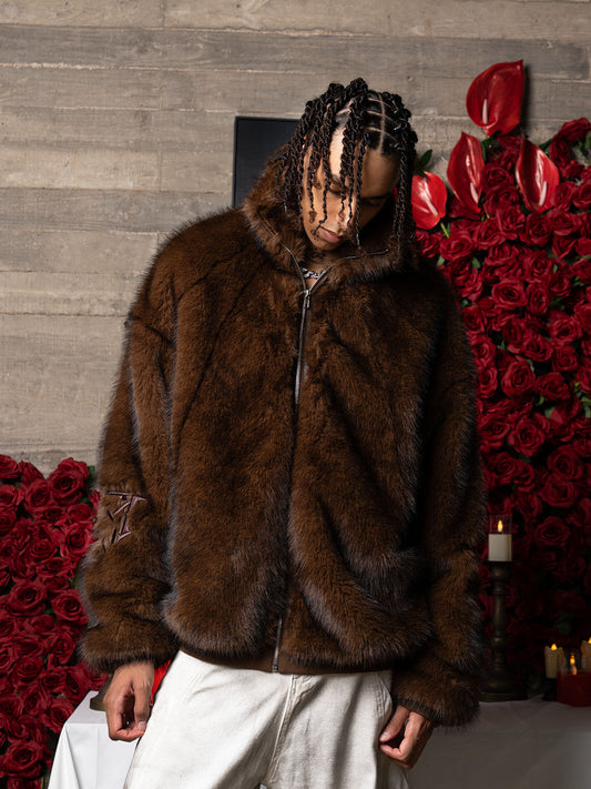 Giacca Supermade in Pelliccia Sintetica Ricamata Marrone di Lusso