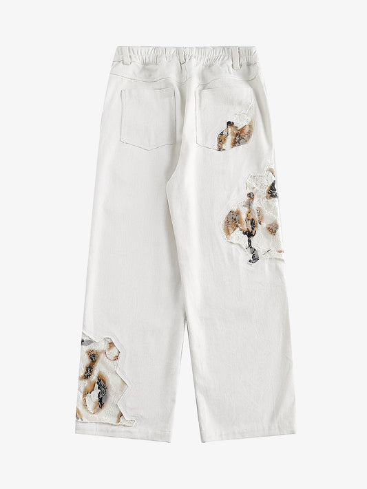 Jeans American Retro Thesupermade Bianchi con Patchwork in Pizzo