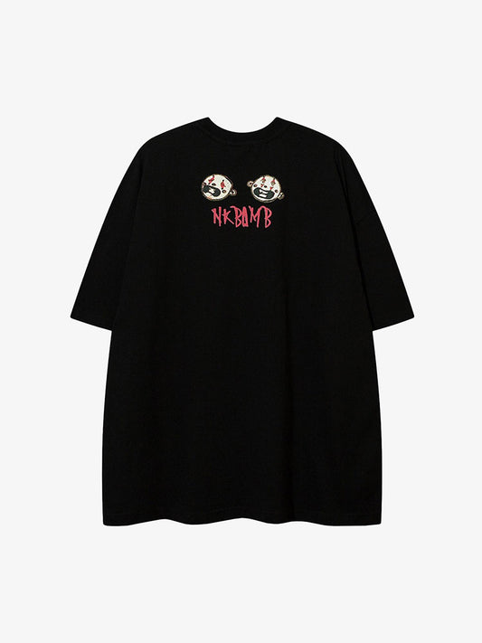 T-shirt Oversize Thesupermade con Stampa Grafica Personaggi Anime Streetwear