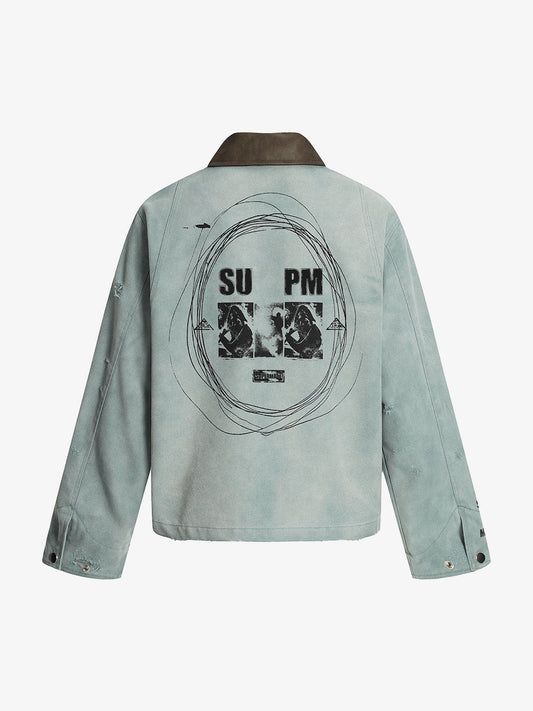 Giacca da Lavoro Vintage Distressed Barn Style Robusta Blu
